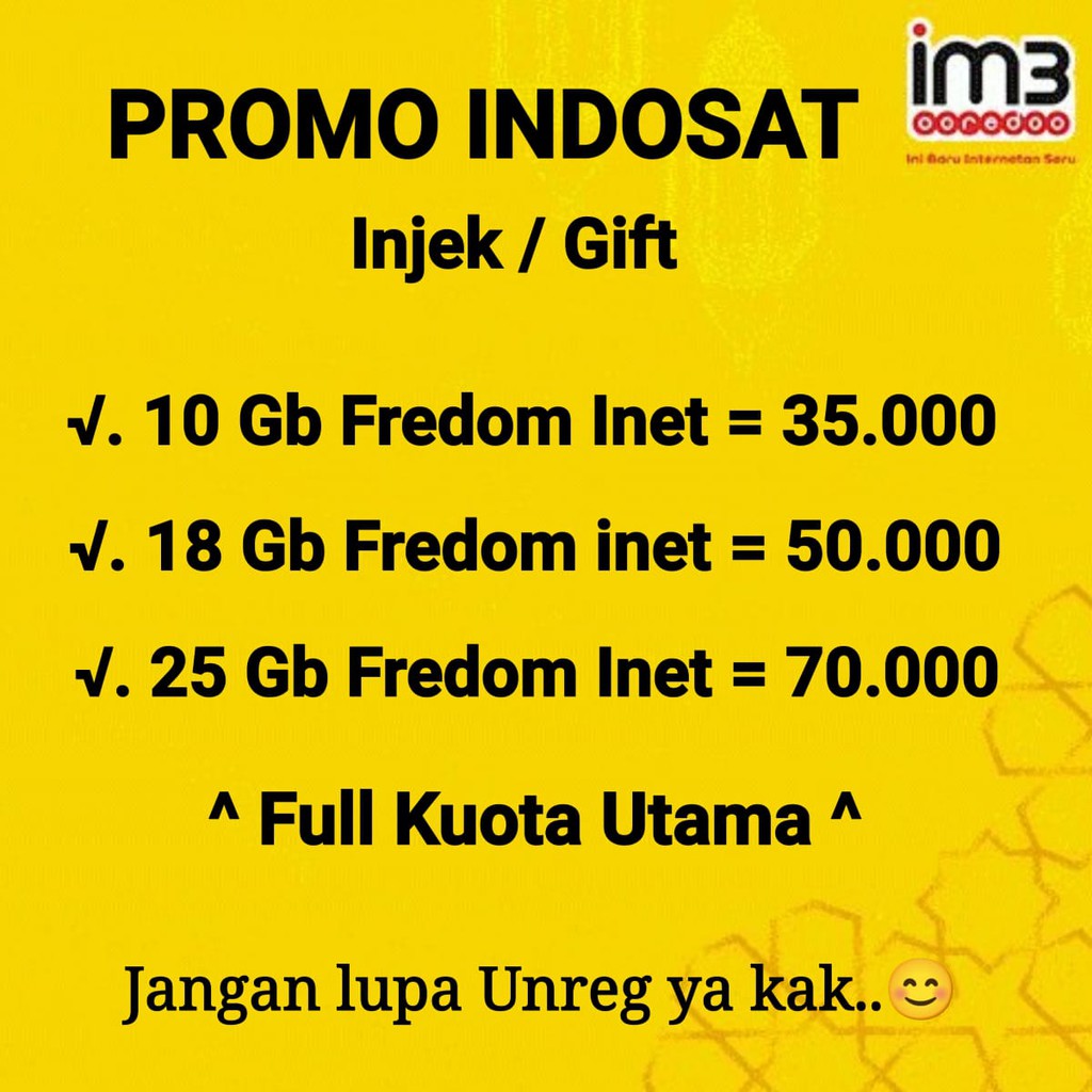 Paket unlimited di atas dapat dibeli melalui aplikasi myim3. Kartu perdana indosat ooredoo im3 paket data unlimited jumbo 50 gbrp172.900: Unlimited telepon & sms ke im3, 100 menit nelpon ke operator lain, 100 sms ke operator lain. Jual beli online semakin aman dan nyaman di orderkuota. Paket ini merupaan serangkaian produk promosi dari internet unlimited terbaik indosat.